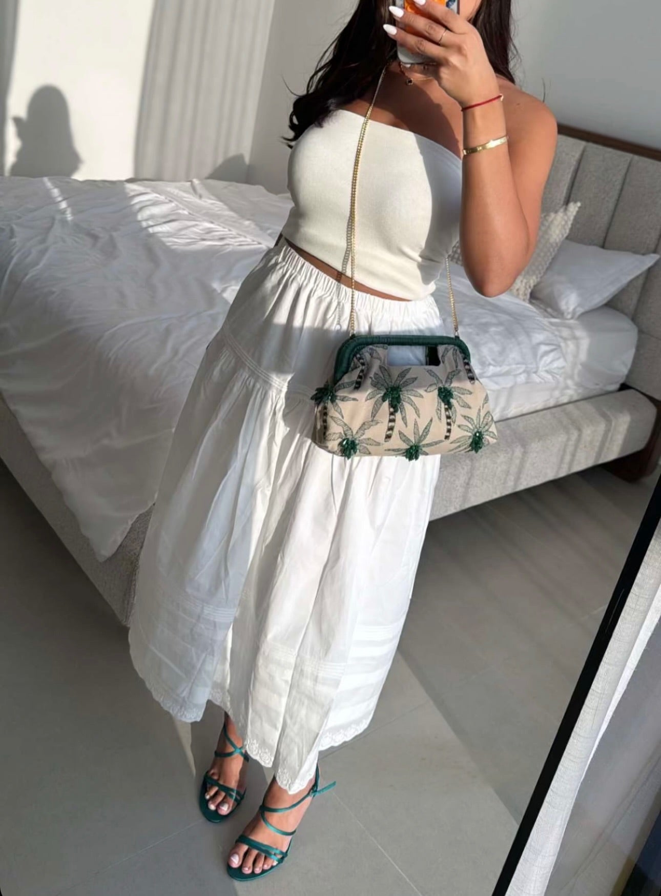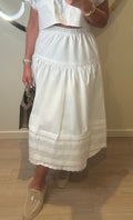 Jupe Bloom blanche à broderies et élastique à la taille.