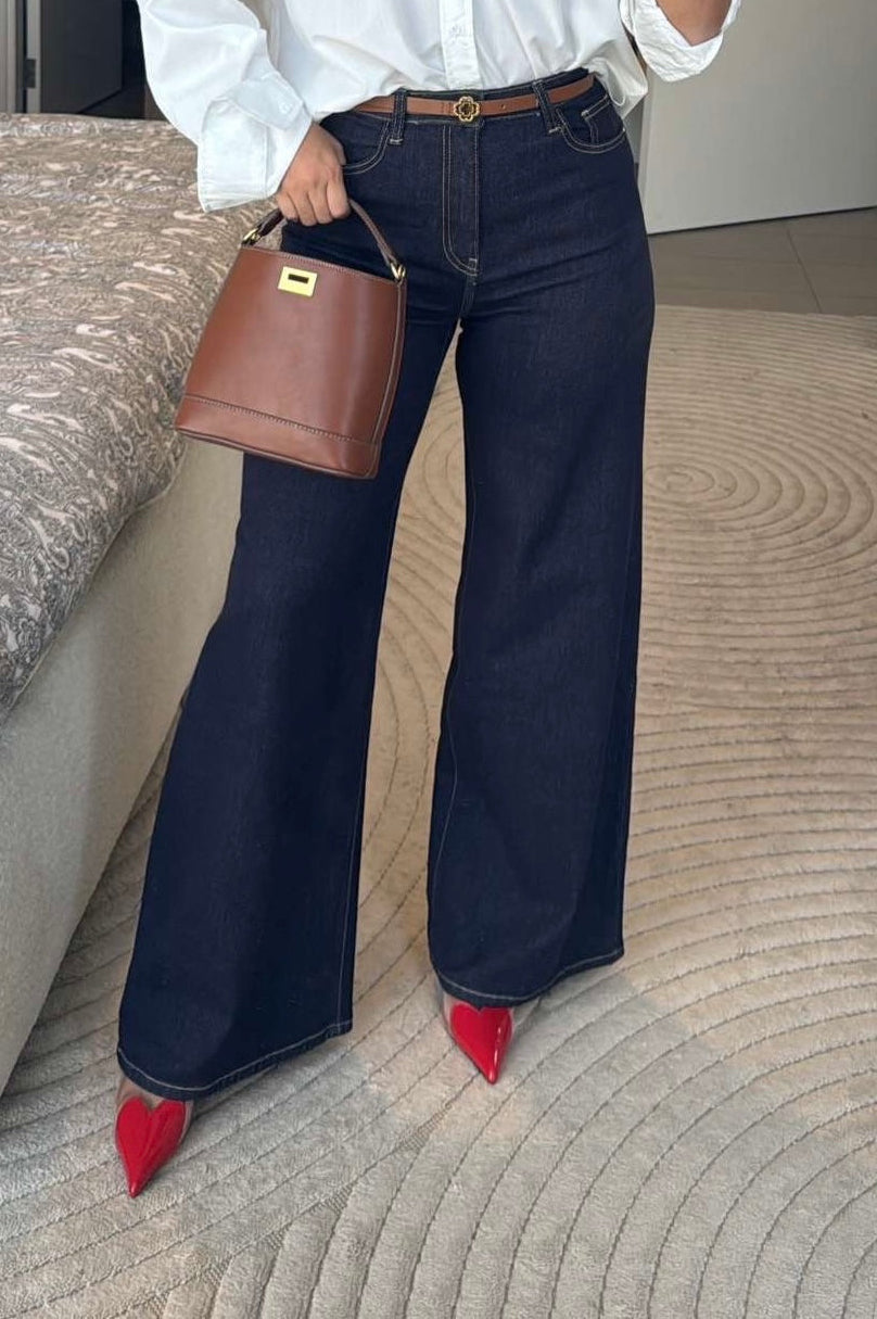 Jean bleu brut à coupe large.